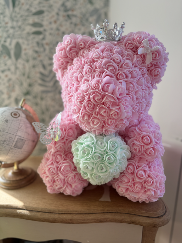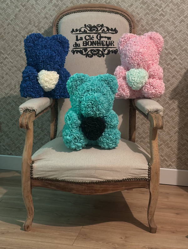 Découvrez notre adorable ourson en roses, une pièce unique qui fera fondre le cœur de celui ou celle qui le recevra. Confectionné avec soin à partir de roses artificielles de haute qualité, cet ourson est à la fois doux et élégant. Parfait pour exprimer vos sentiments les plus tendres lors d'une occasion spéciale, cet ourson est un cadeau intemporel et mémorable.